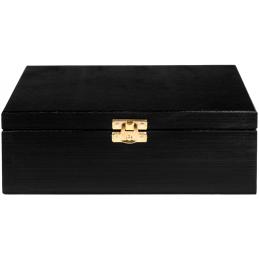 Drewniana skrzynka-pudełko Fenwit to stylowy organizer stworzony z myślą o porządku i estetyce. Wykonana z drewna sosnowego, pomalowana na czarno, wyposażona w pokrywę. Świetnie sprawdzi się jako miejsce do przechowywania biżuterii, drobnych akcesoriów, dekoracji czy jako elegancki pojemnik prezentowy.